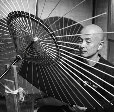 Schon die Prozesslogik ist ein Hinweis: Für Wagasa werden bis zu rund 100 Teilschritte beschrieben, verteilt auf Spezialgewerke (Bambus, Nabe/Verbindungen, Papier, Ölen, Trocknen, Formen).
