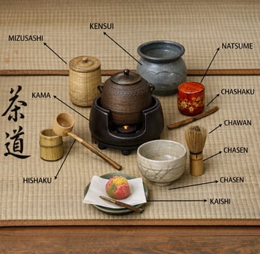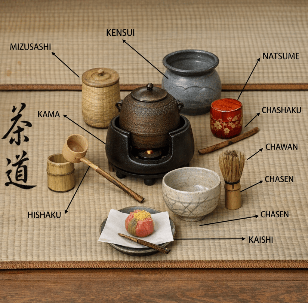 Überblick über Teezeremonie-Utensilien: Chawan, Chasen, Natsume & mehr – Bedeutung, Geschichte, Praxis und Pflege im Chadō.